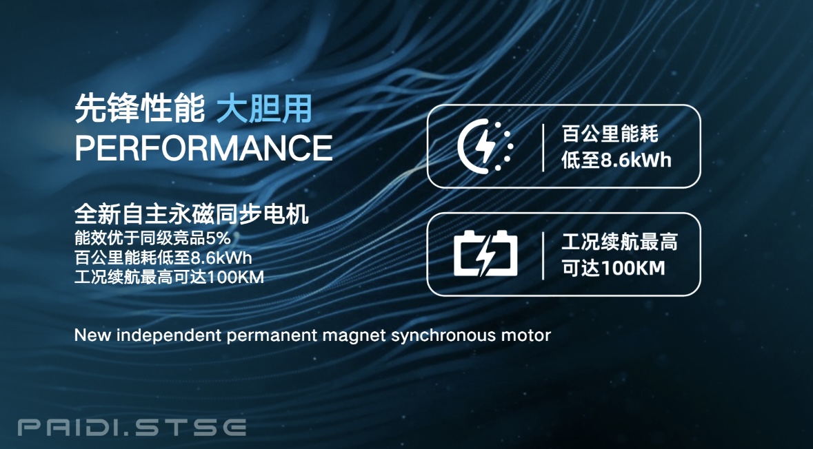 The maximum speed can reach 45km/h, the range is 100km, and the energy consumption per 100km is as low as 8.6kw/h